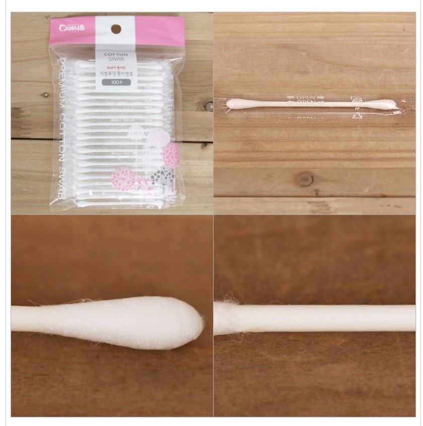 Đầu bông từ cotton thiên nhiên 100%. Mỗi tăm bông được đóng gói riêng, vệ sinh và an toàn cho người dùng.